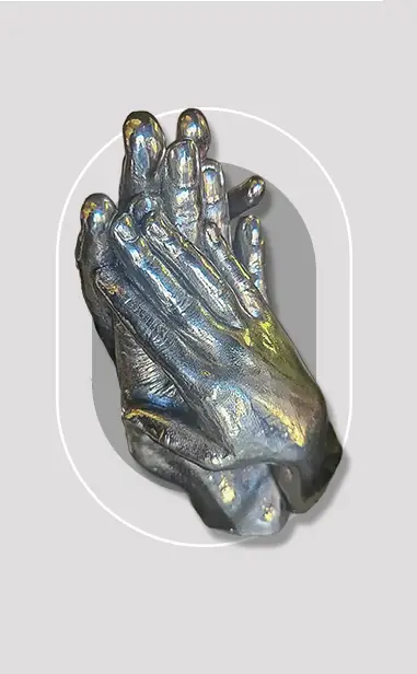 Cast hands come in many different materials, the most common material is “material one” Our bronzing technique is intended to provide a consistent finish to a variety of materials, both conductive and non-conductive. We offer three metal finishes—copper, brass, or nickel—and for convenience, all three are priced the same. After plating, we seal the metal as part of the finishing process to help preserve the condition of your item and prevent tarnishing over time.