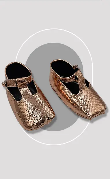 Caps, shoes and keepsakes come in many different sizes and materials. Our bronzing technique is intended to provide a consistent finish to a variety of materials, both conductive and non-conductive. We offer three metal finishes—copper, brass, or nickel—and for convenience, all three are priced the same. After plating, we seal the metal as part of the finishing process to help preserve the condition of your item and prevent tarnishing over time.