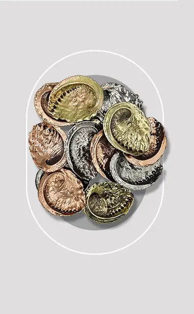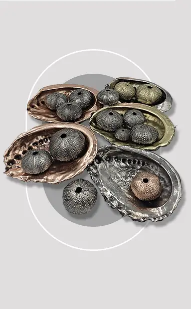 Seashells come in many different sizes and materials. Our bronzing technique is intended to provide a consistent finish to a variety of materials, both conductive and non-conductive. We offer three metal finishes—copper, brass, or nickel—and for convenience, all three are priced the same. After plating, we seal the metal as part of the finishing process to help preserve the condition of your item and prevent tarnishing over time.